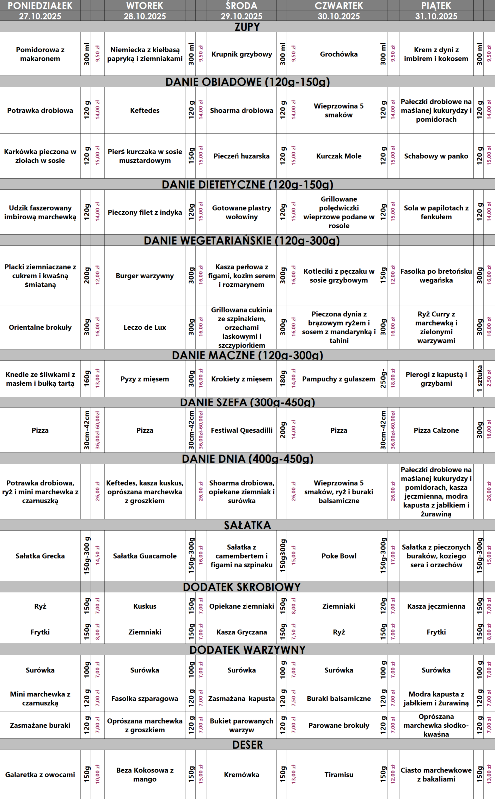 pyszne zupy oraz doskonałe desery.